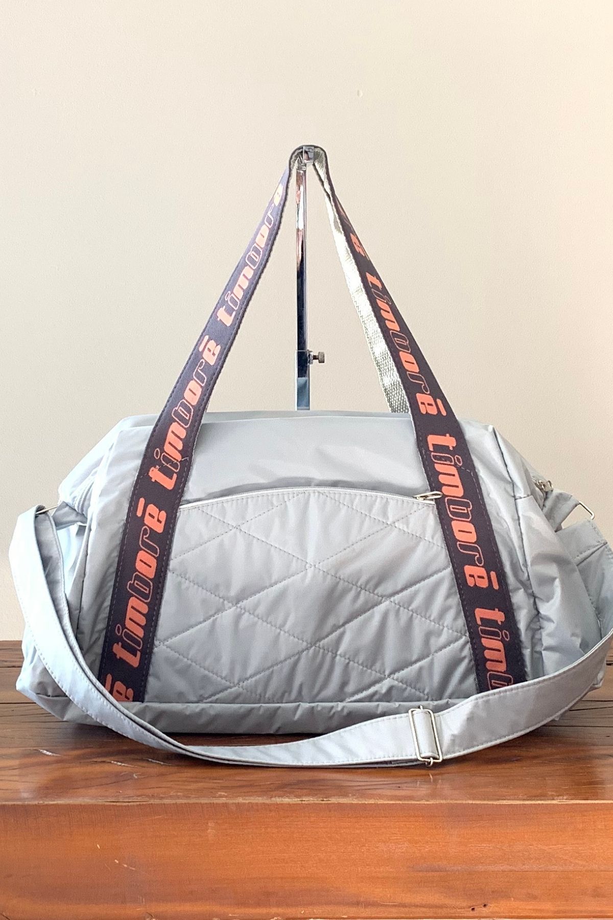 Bolsa confeccionada em nylon, com fechamento em zíper, bolsos externos nas laterais e na frente, possui alça transversal como opção.