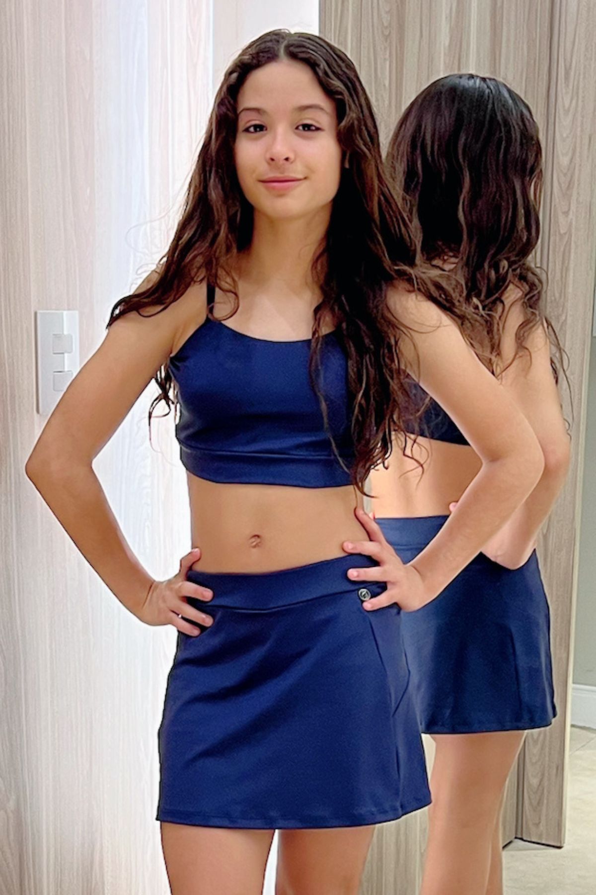 Saia Short Infantil com recorte em diagonal nas laterais e detalhe de galão.